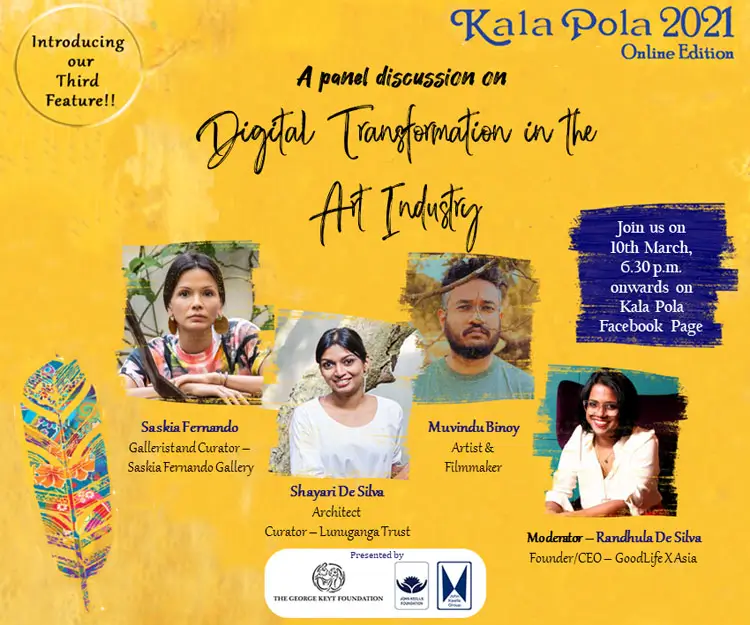 Kala Pola has provided unique opportunities for painters and sculptors to showcase and market their creations to increasing audiences each year since its launch in 1993. Presented by The George Keyt Foundation in association with the John Keells Group, Kala Pola has grown to become an event not to be missed in Colombo’s annual cultural calendar. Due to restrictions on large scale gatherings following the COVID pandemic, the organisers sought to mitigate the health and safety concerns of the event which in recent years has drawn upwards of 30,000 people for the one-day event. Hence it was decided to host Kala Pola virtually this year as a month-long event from 21st February to 21st March 2021.
